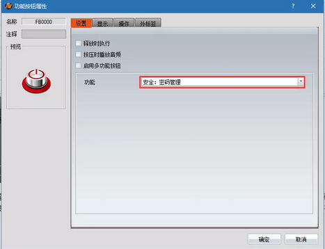(2)放置兩個功能按鈕,一個選擇“安全:登入”,一個選擇“安全:密碼管理”,如下圖: