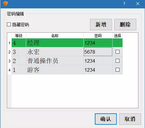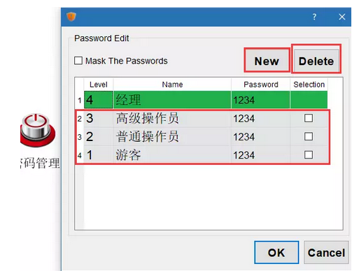 部分企業的產線人員流動性較大,這使得管理層對于設備的操作密碼也就是觸摸屏的安全等級信息、密碼的管理造成了一定程度上的麻煩,每次出現人員變動就叫系統廠商來重新處理程序是比較麻煩的,最方便的方法就是讓產線管理人員自己修改安全等級信息、密碼,這也就涉及到了C3人機界面的安全等級密碼在線更新的功能。深圳捷達興,永宏一級代理,