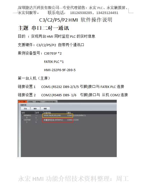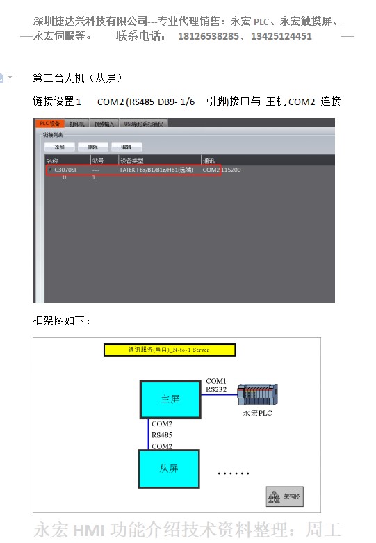 一機(jī)兩屏在永宏P(guān)LC無多余串口可使用的情況下,用戶需要從不同的地方通過兩臺觸摸屏控制同一臺PLC,
