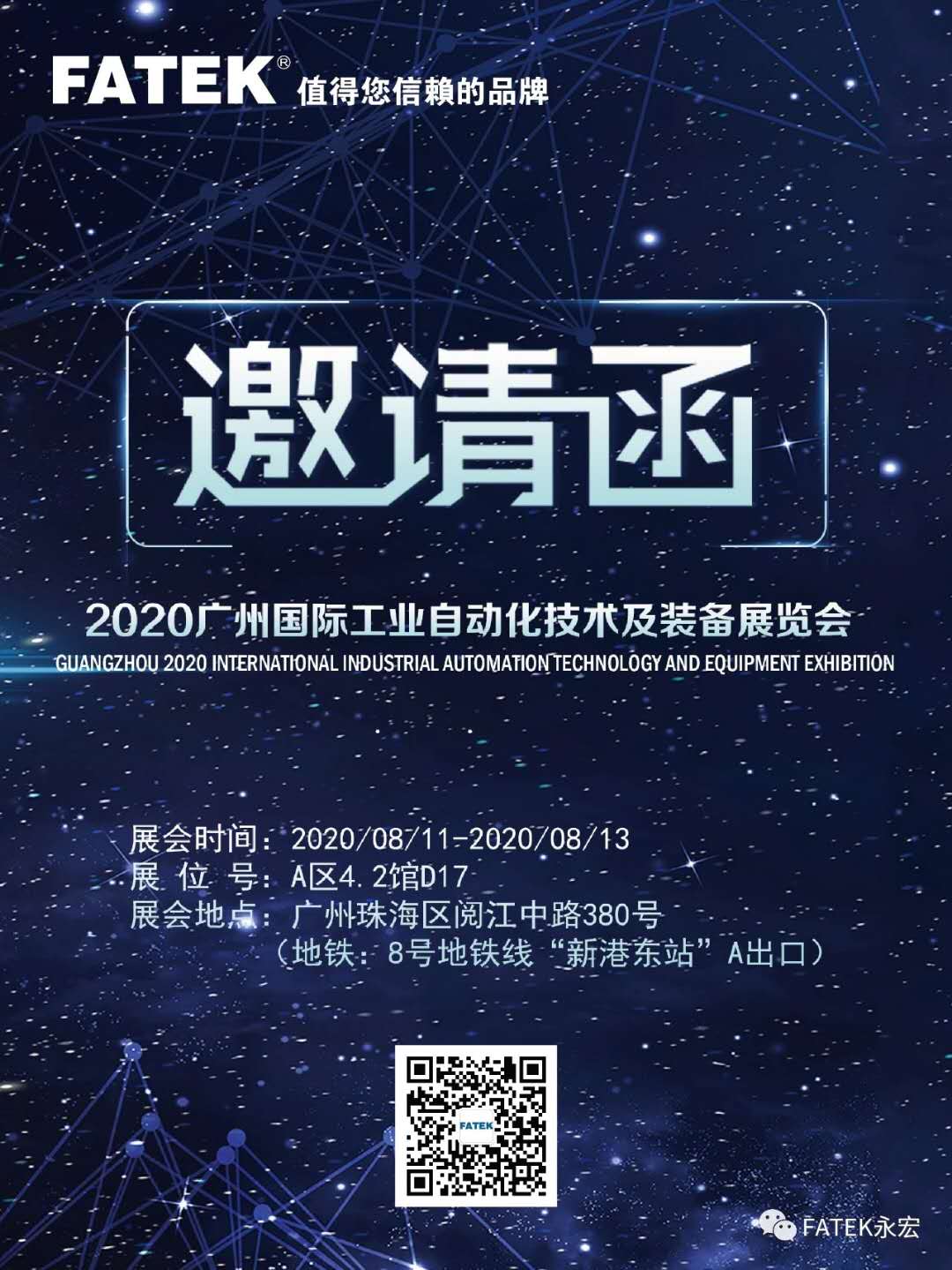 2020年8月11日~13日臺灣永宏P(guān)LC廠家將攜新產(chǎn)品及自動化解決方案亮相 廣州國際工業(yè)自動化技術(shù)及裝備展覽會。誠摯邀請
