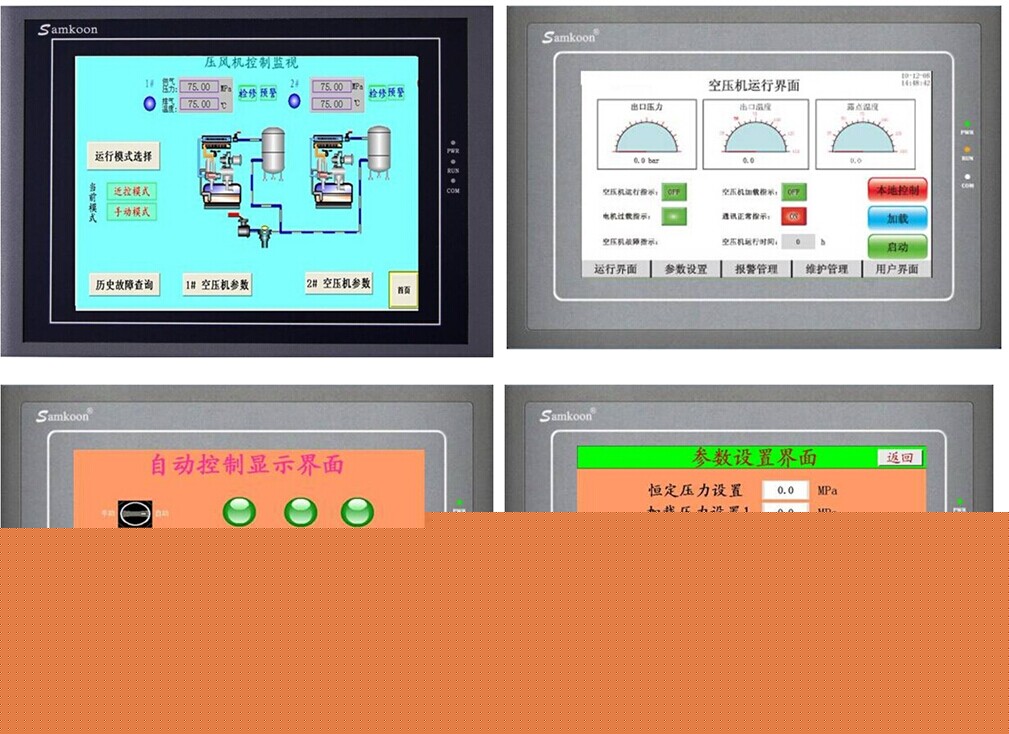 觸摸屏的畫面組態深圳顯控自動化開發的SKWorkshop軟件來編輯形成,在其畫面上也有基本相同的參數信息,報警信號,以及溫度曲線等,也可以從觸摸屏上發出相應的控制命令。觸摸屏部分畫面如圖2所示。