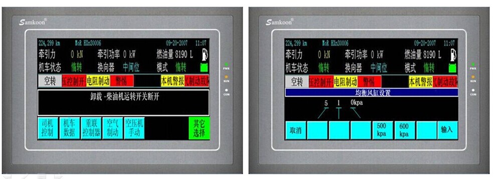 觸摸屏采用深圳顯控自動化的Samkoon SK-070AS觸摸屏,它兩個COM口,其中一個是RS232口,另一個即可當做RS232,又可以用作 RS485來通訊。同時還帶有兩個USB口,一個10M/100M自適應RJ 45以太網接口。此縱橫科技的觸摸屏是一套以嵌入式低功耗CPU為核心的高性能嵌入式人機界面,采用7英寸高亮度TFT液晶顯示屏,四線電阻式觸摸屏,同時還預裝微軟嵌入式實時多任務操作系統WinCE和免費捆綁HMIBuilder嵌入版組態軟件無線點。