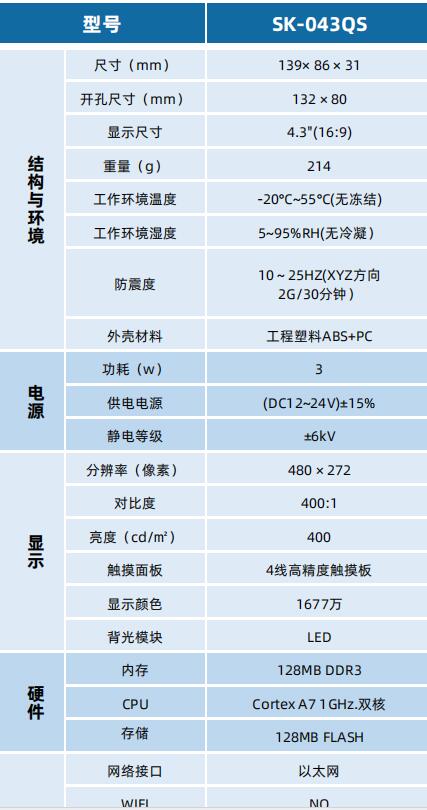 SK-043QS 顯控人機界面 深圳顯控觸摸屏